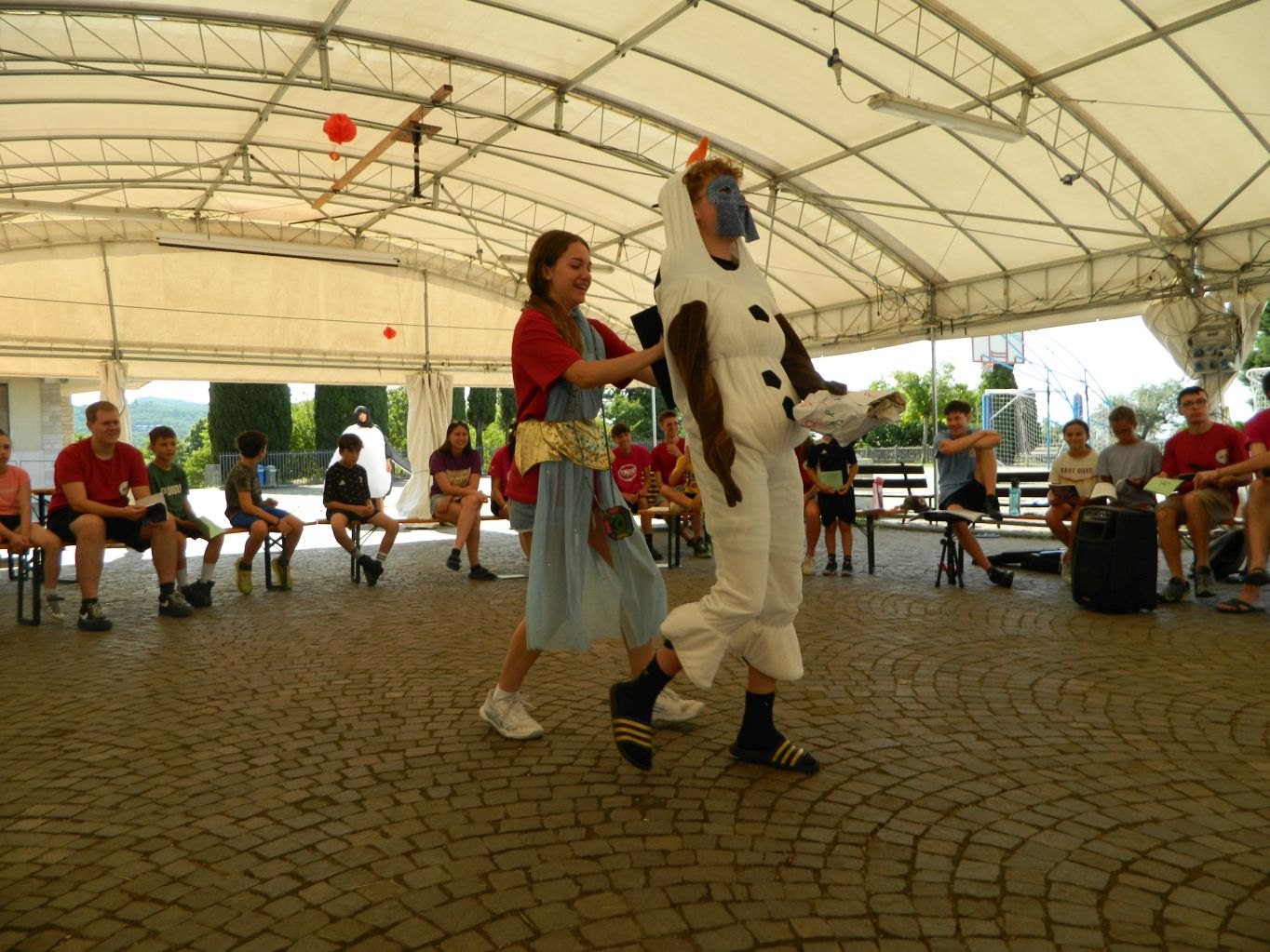 Ogni giornata era affidata ad un’équipe di animatori che si sono impegnati per rendere ogni momento speciale. La giornata iniziava presto, con la preghiera delle Lodi tra animatori, seguita dalla colazione e da un momento di preghiera con i bambini: qui faceva il suo ingresso Simon-Pietro che raccontava ogni giorno un episodio diverso tratto dal Vangelo.